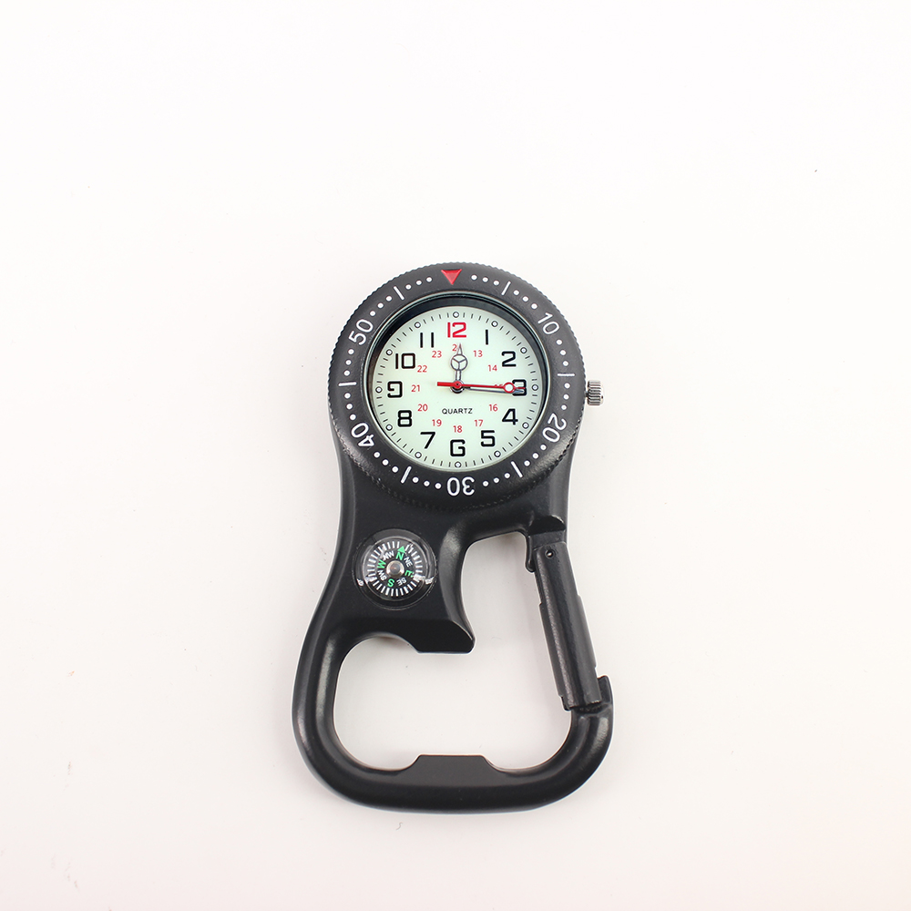 Descriptions : Carabiner Watch , FOB watch with compass, bottle opener, clip