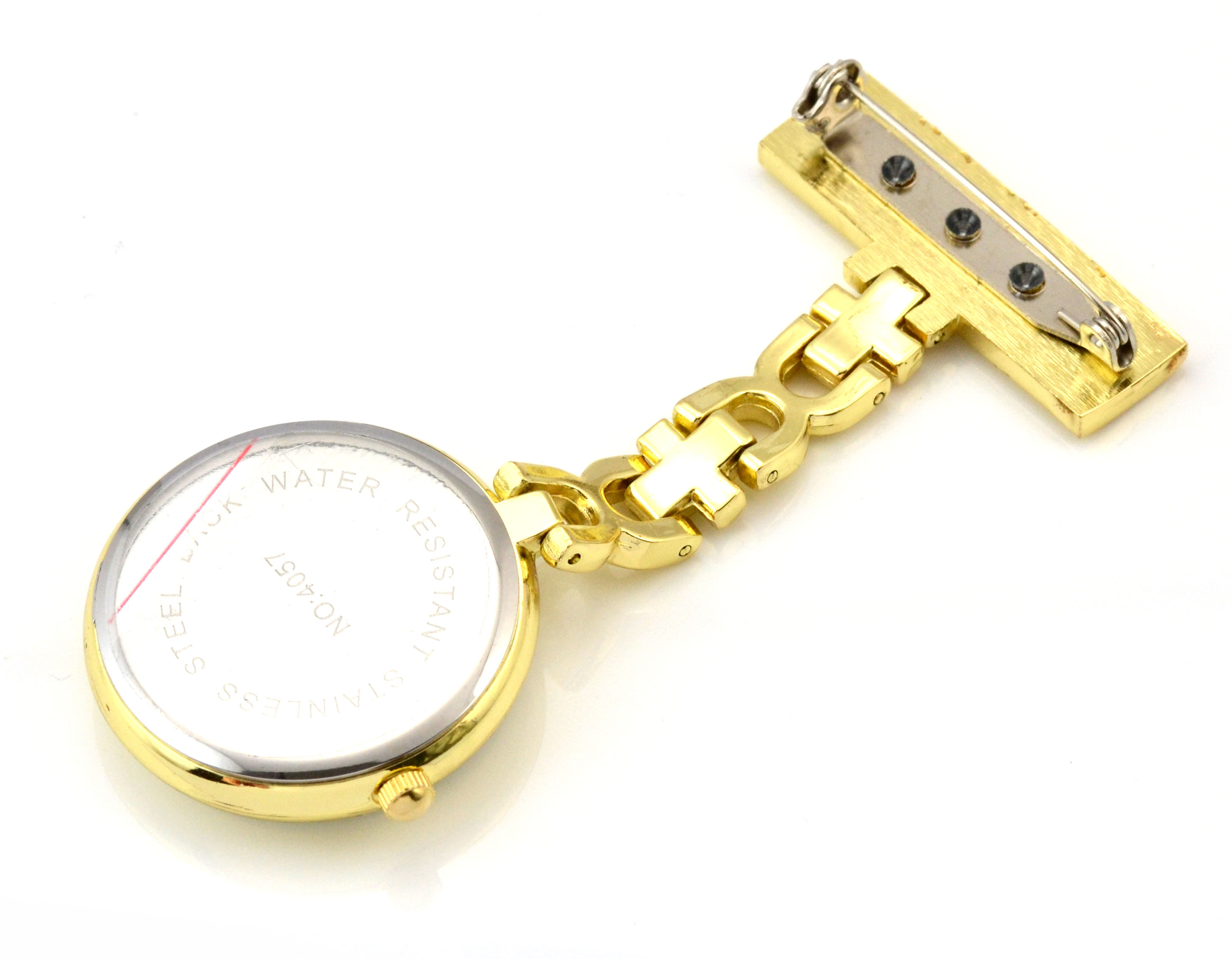 - Product description: NS2105E Gold plated , white dial and black numbers nurse watch with curved glass , luminous hands, luminous dial and index ,Glow in the dark nurse fob watches from FOB Nursing watch wholesales in Chin