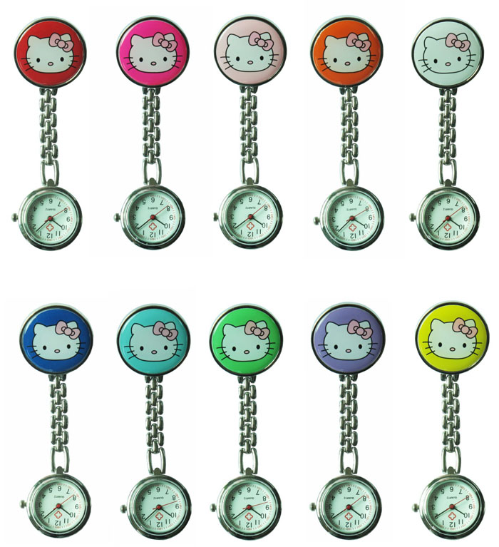 - Product description: SKU#NS1025 hello kitty fob nurse watches, V hello Kitty, Love heart Hello Kitty Hello kitty and tiddy bear This metal smile face nurse watch with many colors available., Japan movement