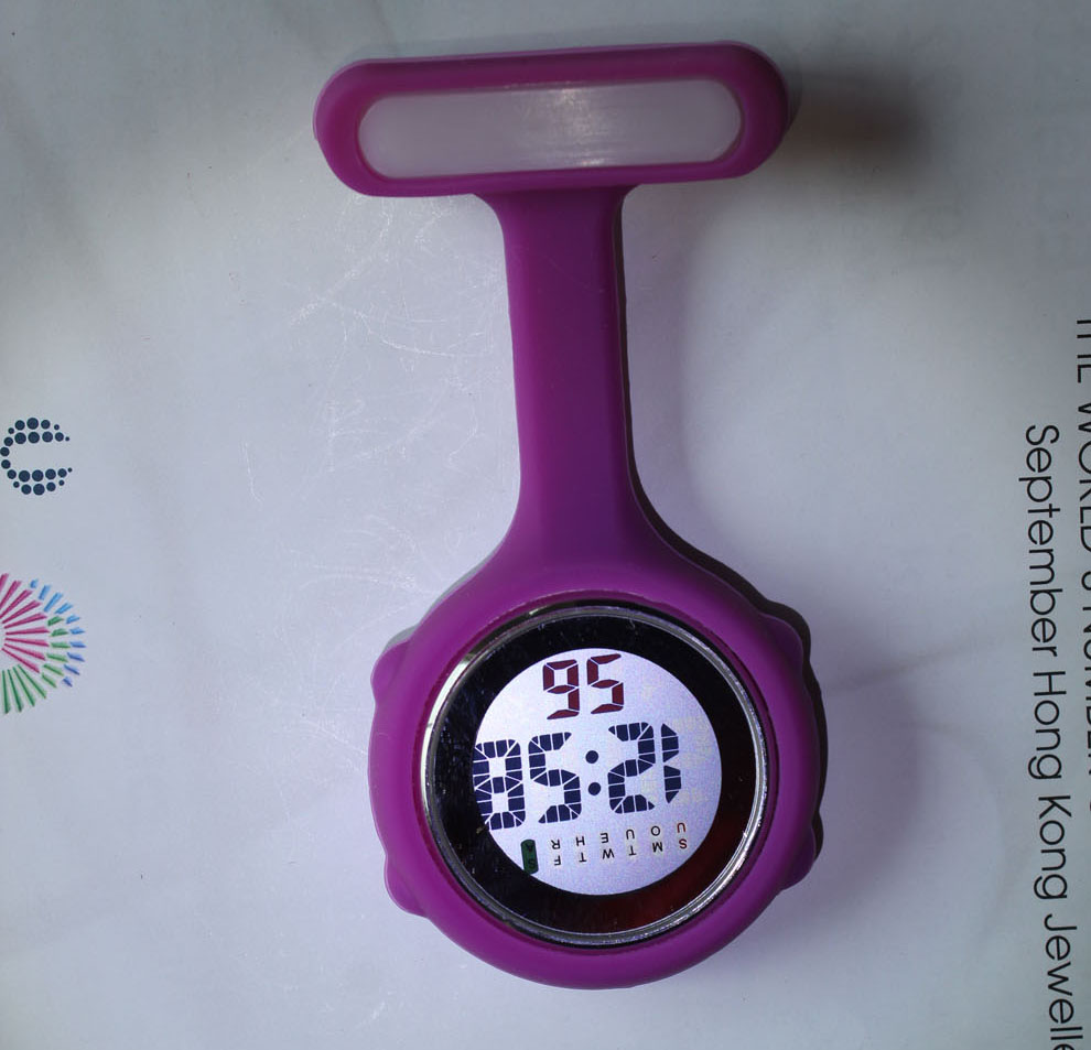 - Product description: SKU#NS888-Purple Digital Silicone Medical Nurse Watch Fob with safety pin, multi-function LED nurse Watch LED Nurse Watch With stop watch,calendar alarm functions, LED medical watches for nurses and d