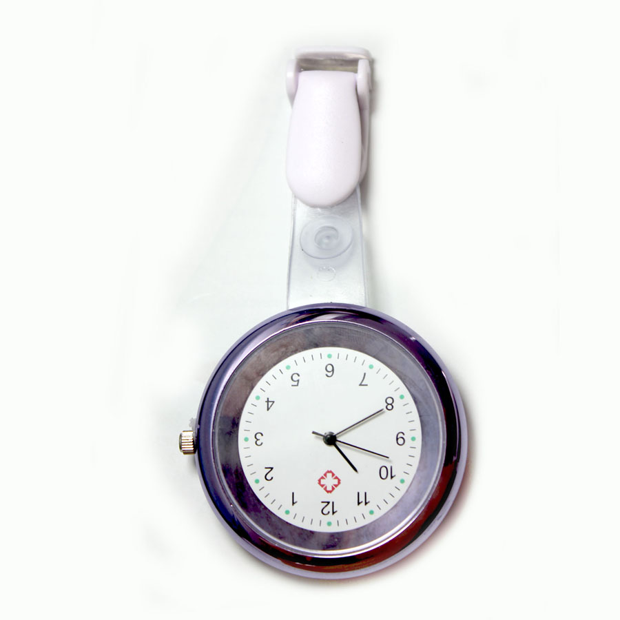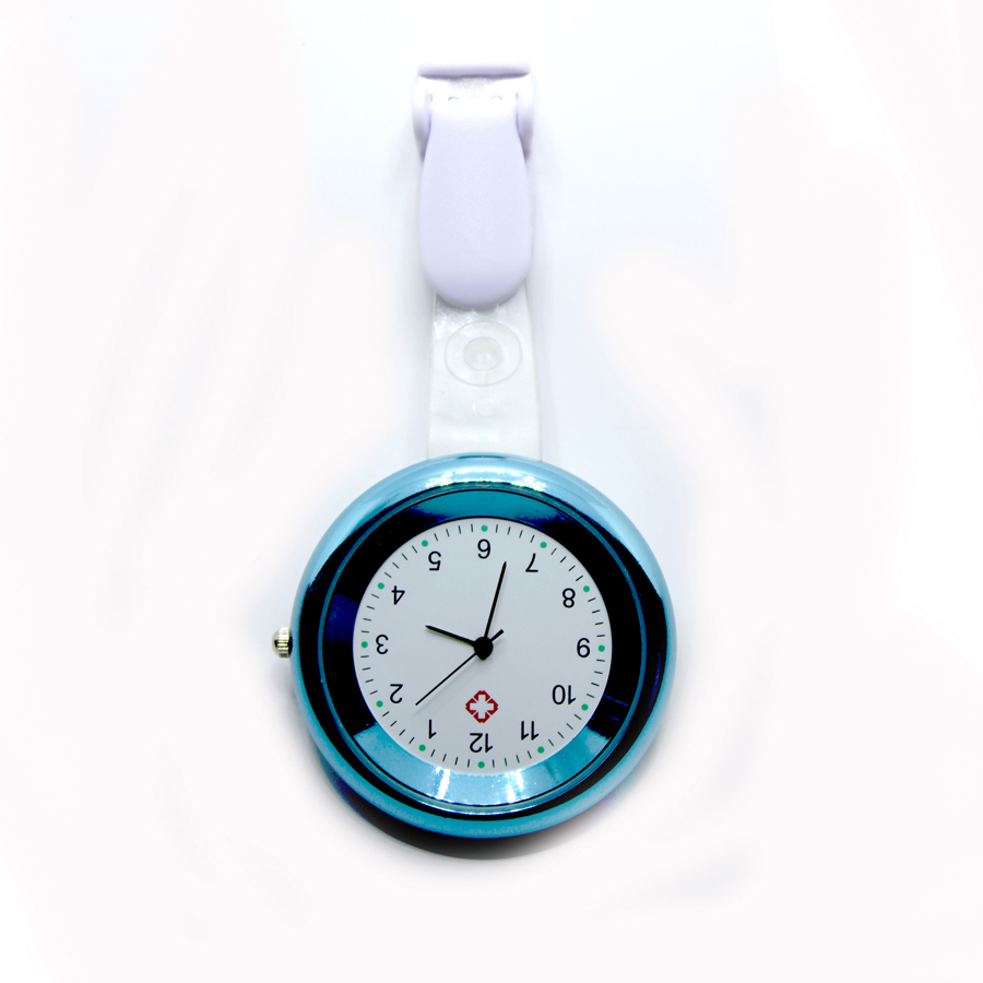 Alloy medical nurse watches, with a safety pin on the back. Suitable to measure patient pulse, beat and sterilization procedure timing. Conforming to procedures not allowing nurses to wear wrist watches.