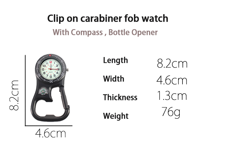 Carabiner watch CH914 China factory ,Clip-On Carabiner Pocket FOB Watch Compass Bottle Opener for Doctors Nurses Paramedics Chefs Analog Display