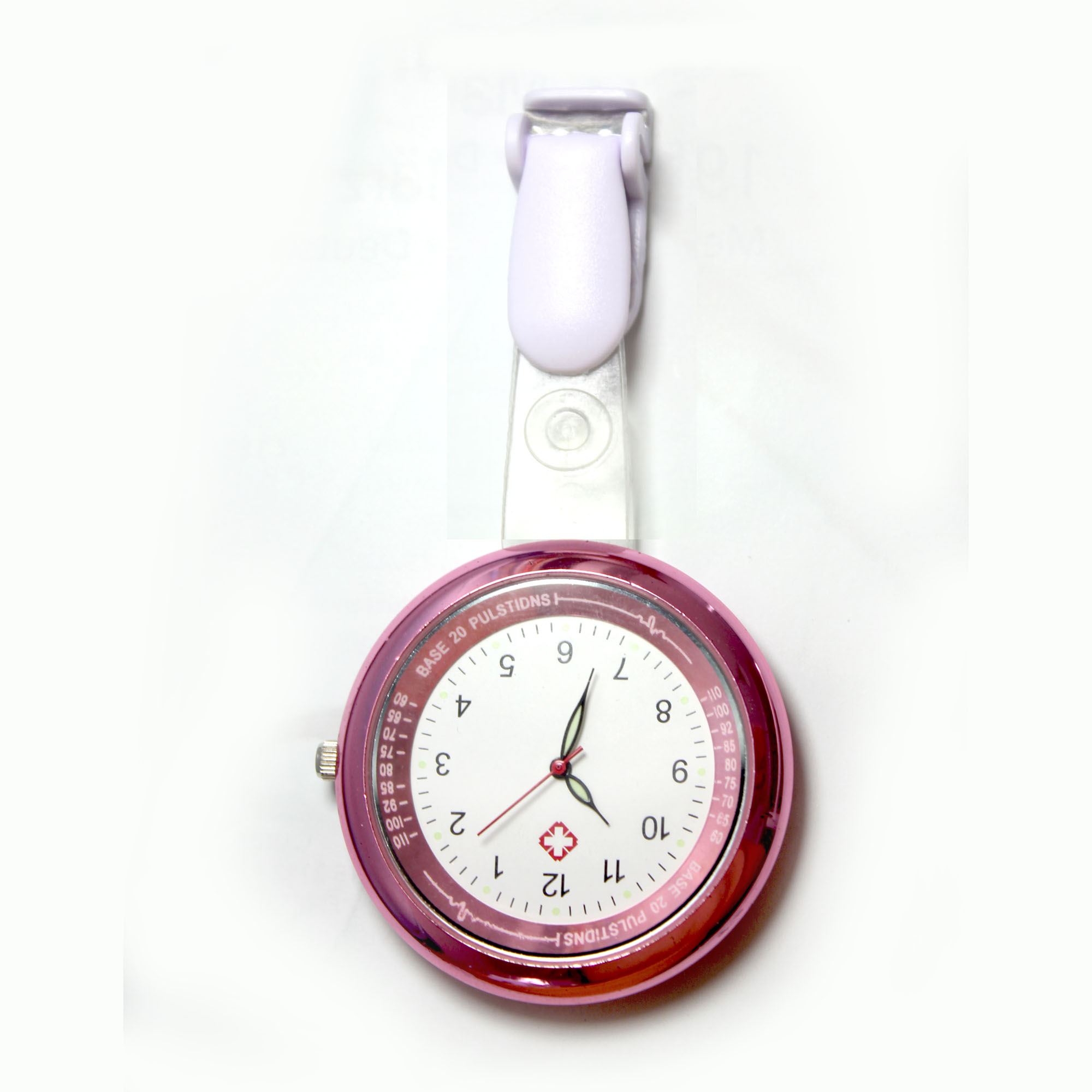 Alloy medical nurse watches, with a safety pin on the back. Suitable to measure patient pulse, beat and sterilization procedure timing. Conforming to procedures not allowing nurses to wear wrist watches.