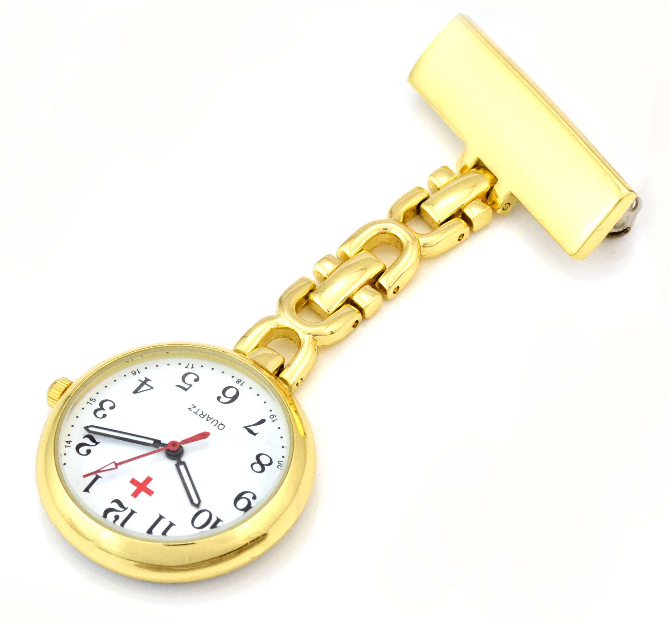 - Product description: NS2105E Gold plated , white dial and black numbers nurse watch with curved glass , luminous hands, luminous dial and index ,Glow in the dark nurse fob watches from FOB Nursing watch wholesales in Chin